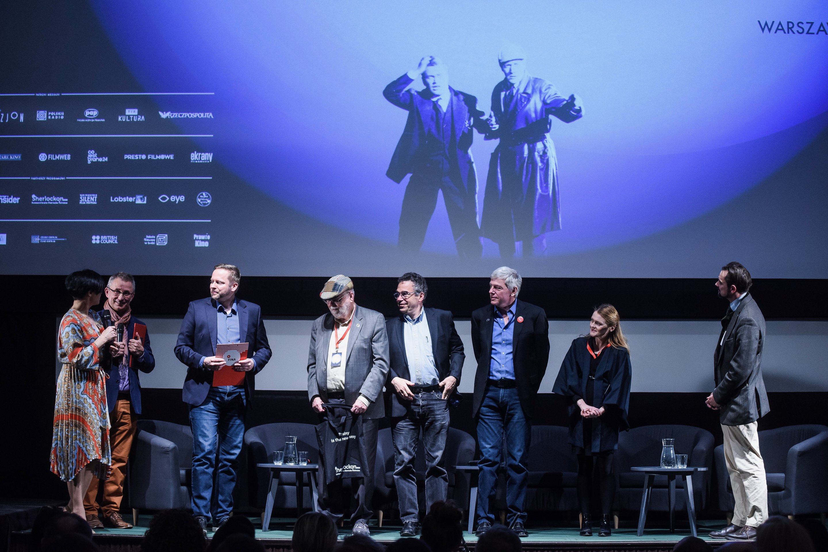 O godzinie 19 przy pełnej sali dyrektor Filmoteki Narodowej – Instytutu Audiowizualnego (FINA) Dariusz Wieromiejczyk otworzył festiwal. Bardzo się cieszę, że spędzamy ten wieczór razem. Widok pełnej sali na naszym festiwalu jest dla mnie ogromną radością. Jeszcze kilka dni temu program naszego przeglądu można było nazwać broszurką. Dzisiaj jest to już mała książeczka – mówił ze sceny. Następnie przybliżył kulisy decyzji wybrania słynnego detektywa na główną postać 16. ŚNK, zaznaczając, że kino zawsze kochało kryminalne historie. Ważny był jednak także drugi, mniej oczywisty powód. Z polskich filmów niemych do naszych czasów przetrwało mniej niż 10% produkcji – stwierdził dyrektor FINA. To właśnie sprawia, że każdy archiwista filmowy jest trochę detektywem, który tropi każdą, nawet najmniejszą informację. Głos zabrała także zastępca dyrektora FINA Anna Sienkiewicz-Rogowska, która zaapelowała do publiczności o kontakt z archiwum w przypadku odnalezienia puszek z filmami. Przypominamy: takich puszek nigdy nie należy otwierać samodzielnie! .